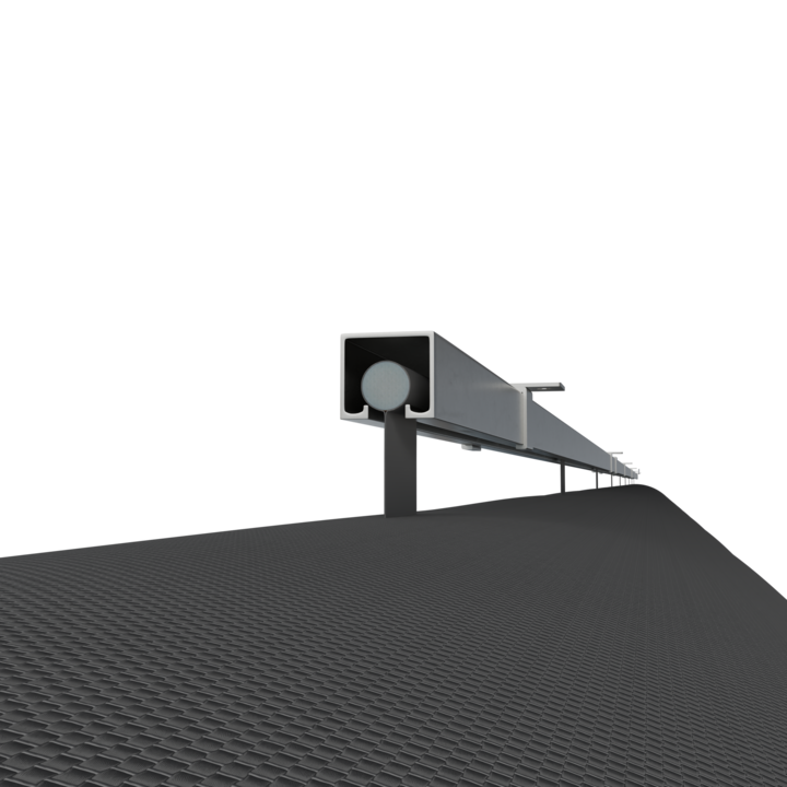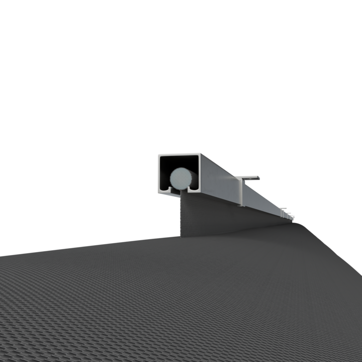 The rail’s sliding element can be either a plastic clip or a fabric edging (keder), allowing smooth installation and secure positioning of the duct.