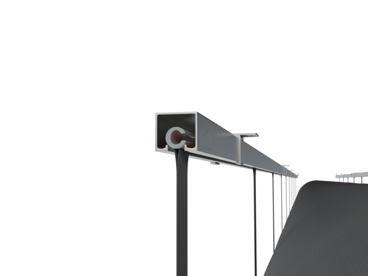 The CeilGlide Double system is designed for stable, direct ceiling installation and is compatible with all duct diameters.